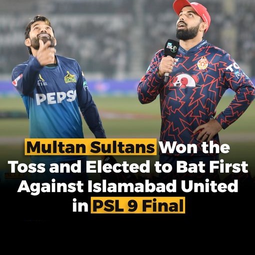 PSL Final The teams of Multan Sultans and Islamabad United are competing in the final of PSL final 9 today. The final will start at 9 pm at the National Stadium Karachi, the arrangements for the match have been finalised, the final toss was won by Multan Sultans, who are playing the final for the fourth time.