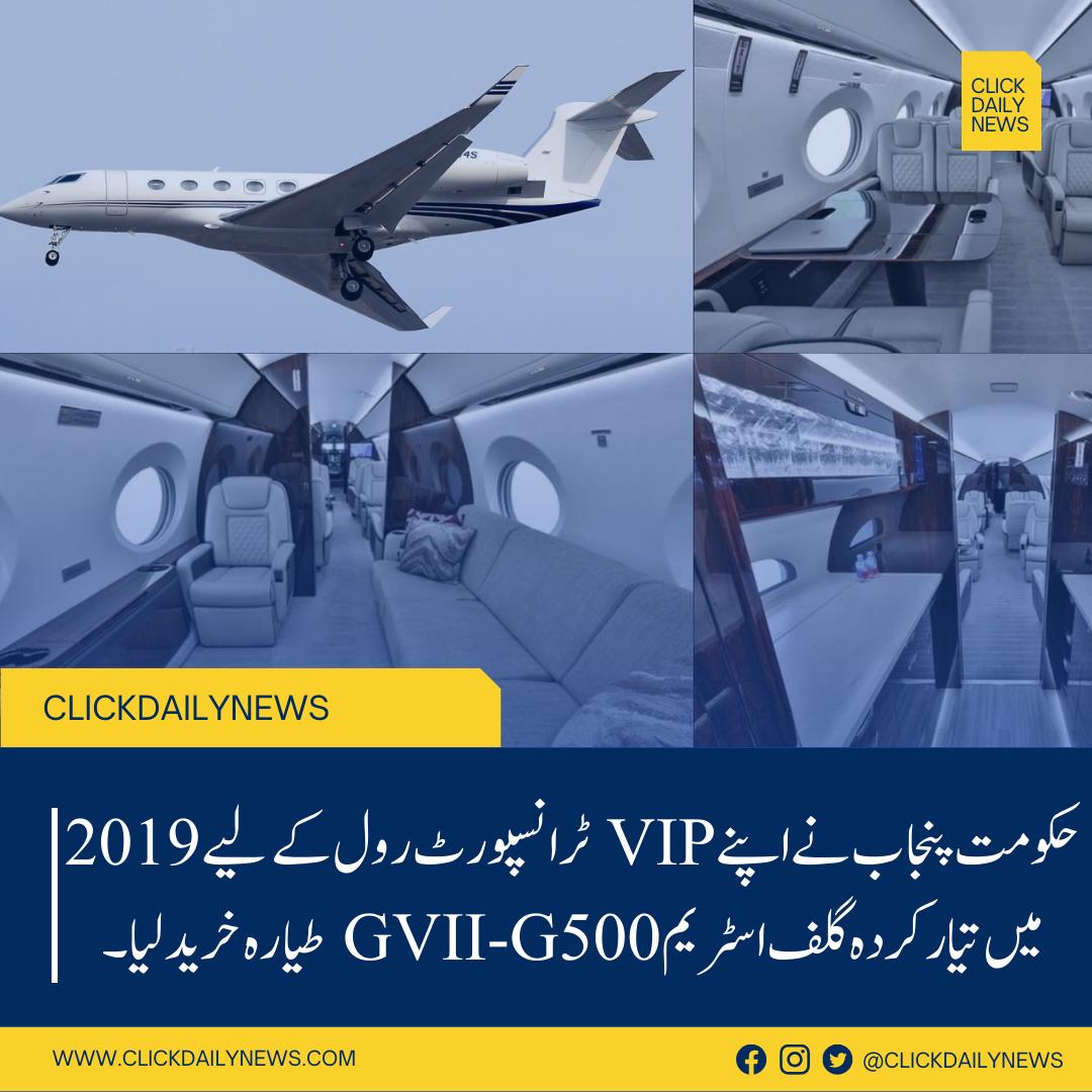 The Government of Punjab, Pakistan has inducted a 2019-manufactured Gulfstream GVII-G500 into its official fleet to serve in the VIP transport role. The aircraft, built by US-based aerospace manufacturer Gulfstream Aerospace, is regarded as one of the most advanced long-range business jets currently in service.